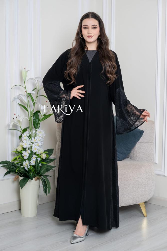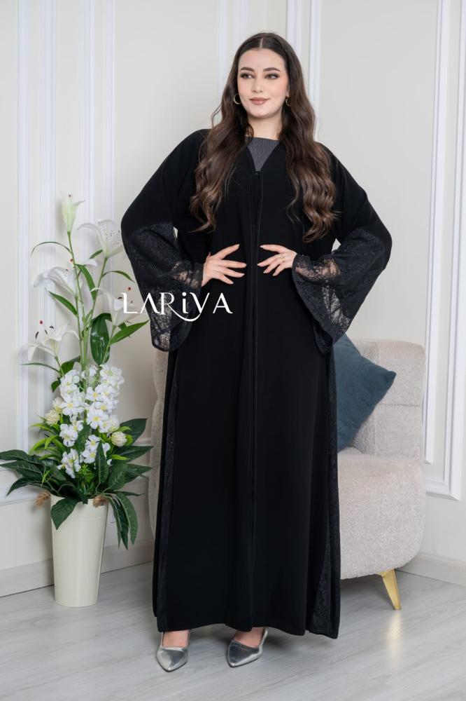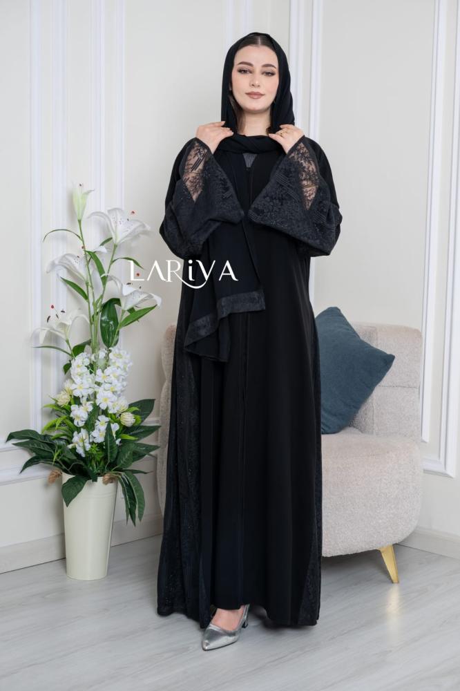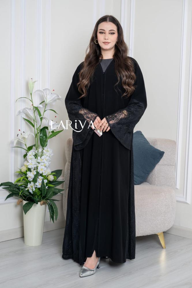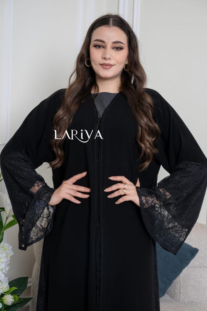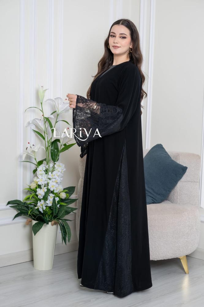 عباية سوداء كريب تدخيله دانتيل مطرز