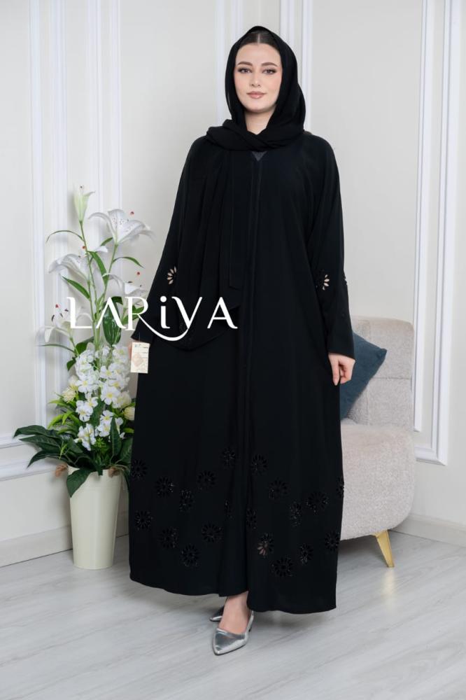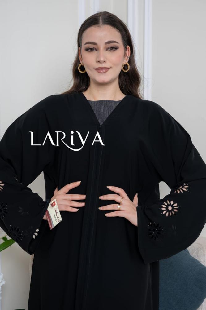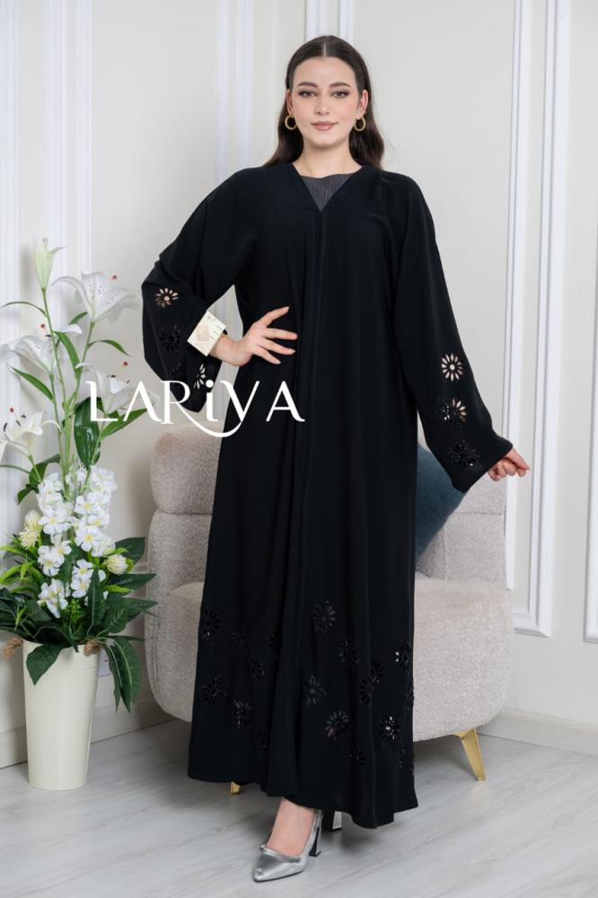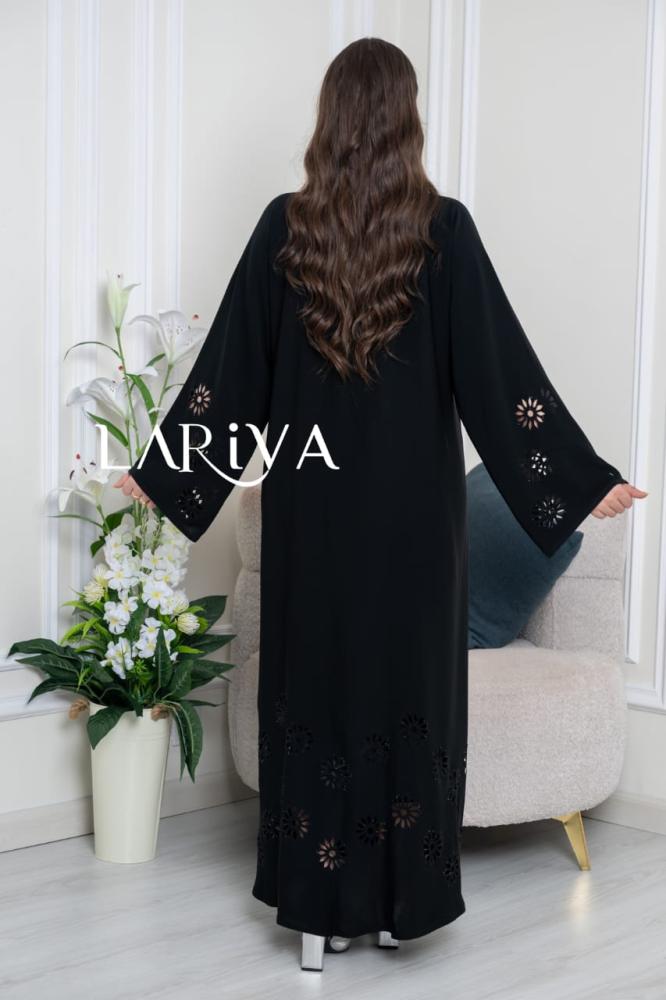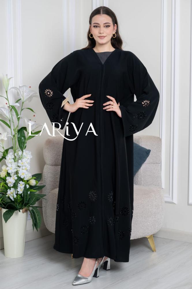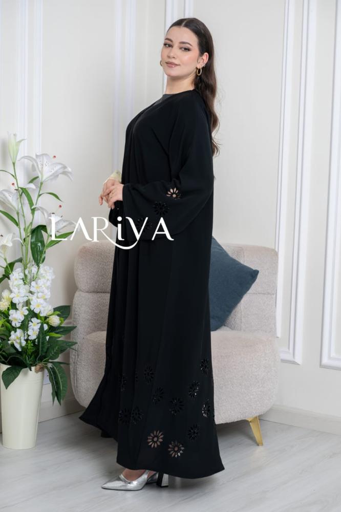 عباية سودا قماش نواعم كوري تخريم ليزر