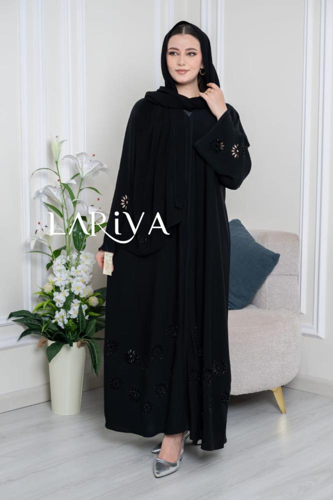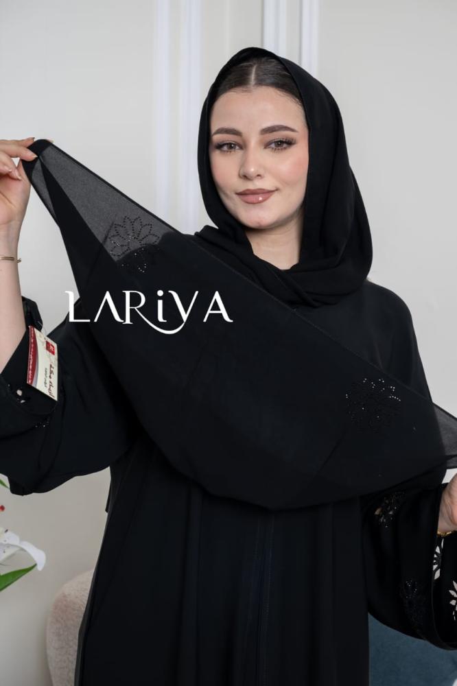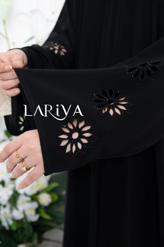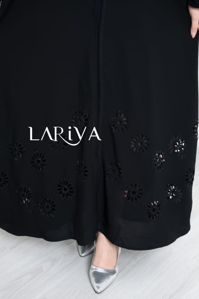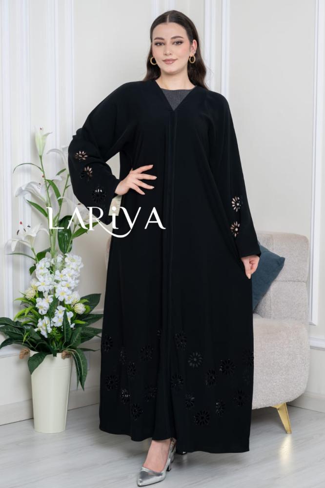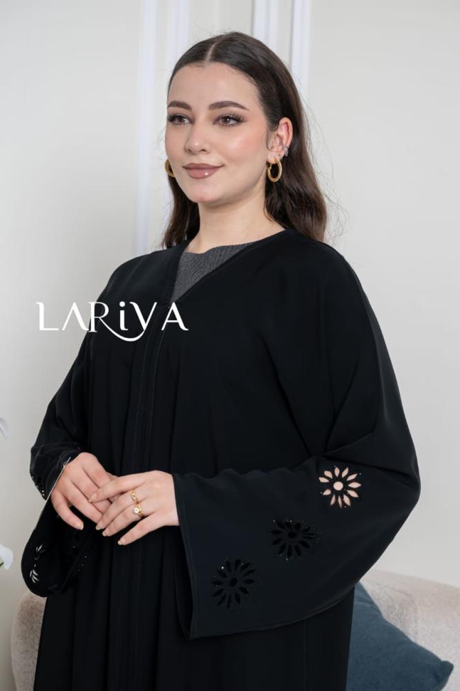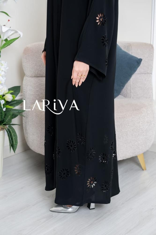 عباية سودا قماش نواعم كوري تخريم ليزر
