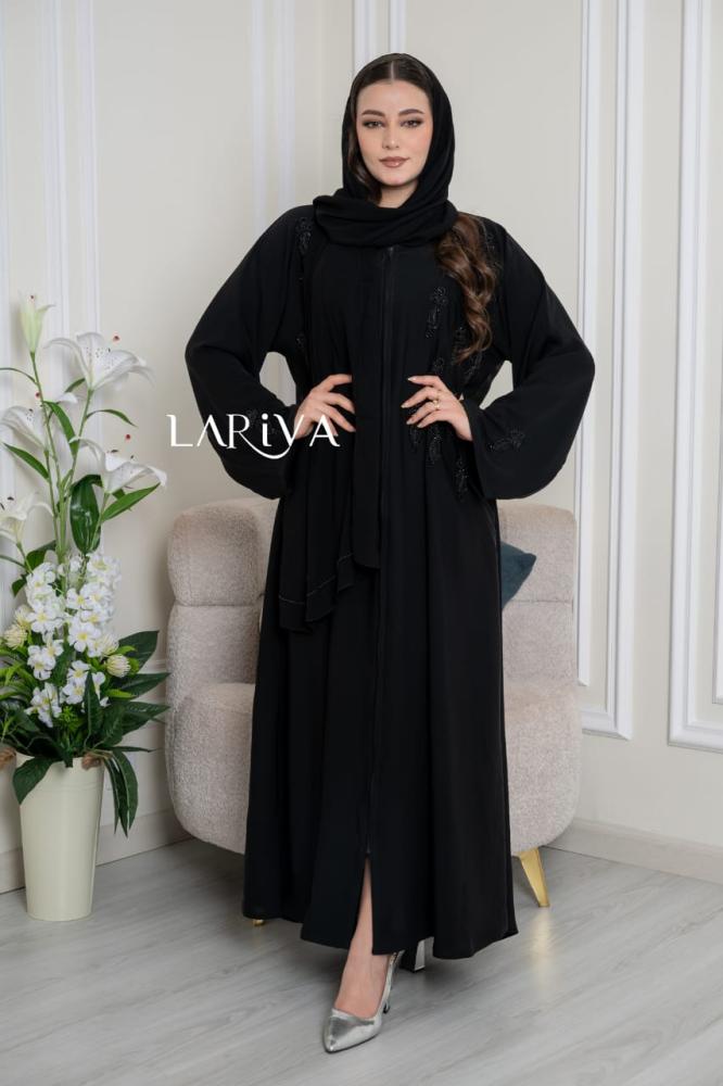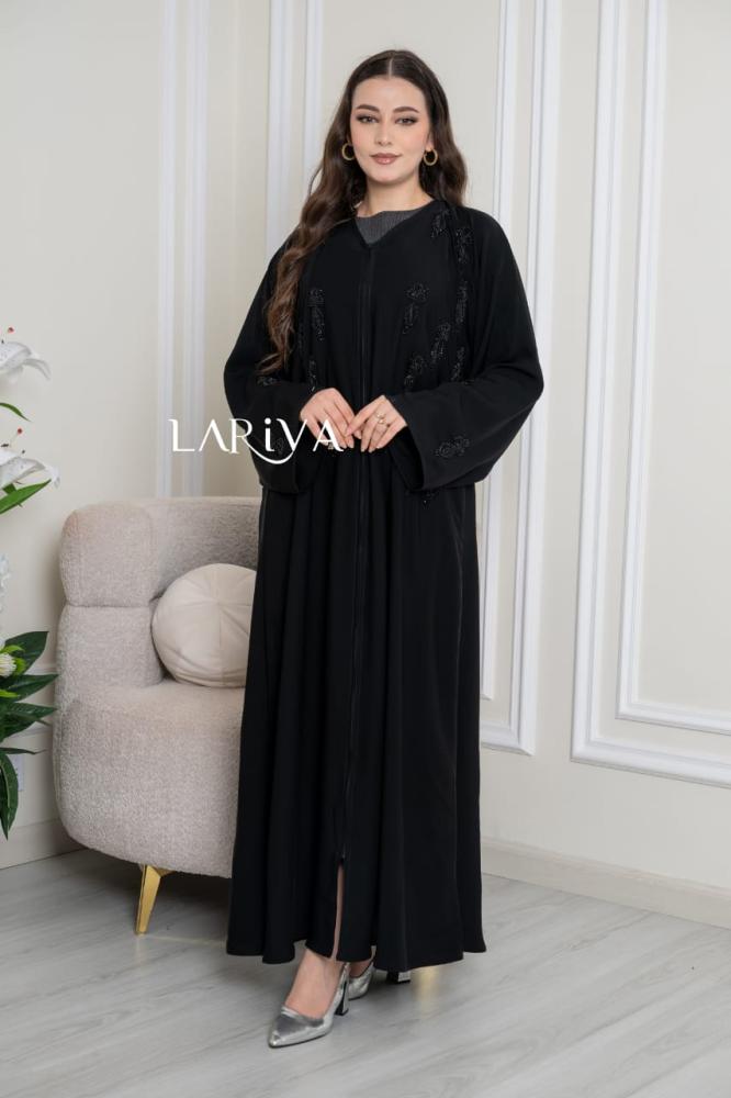 - عبايه استقبال فاخرة بلون اسود ملكي