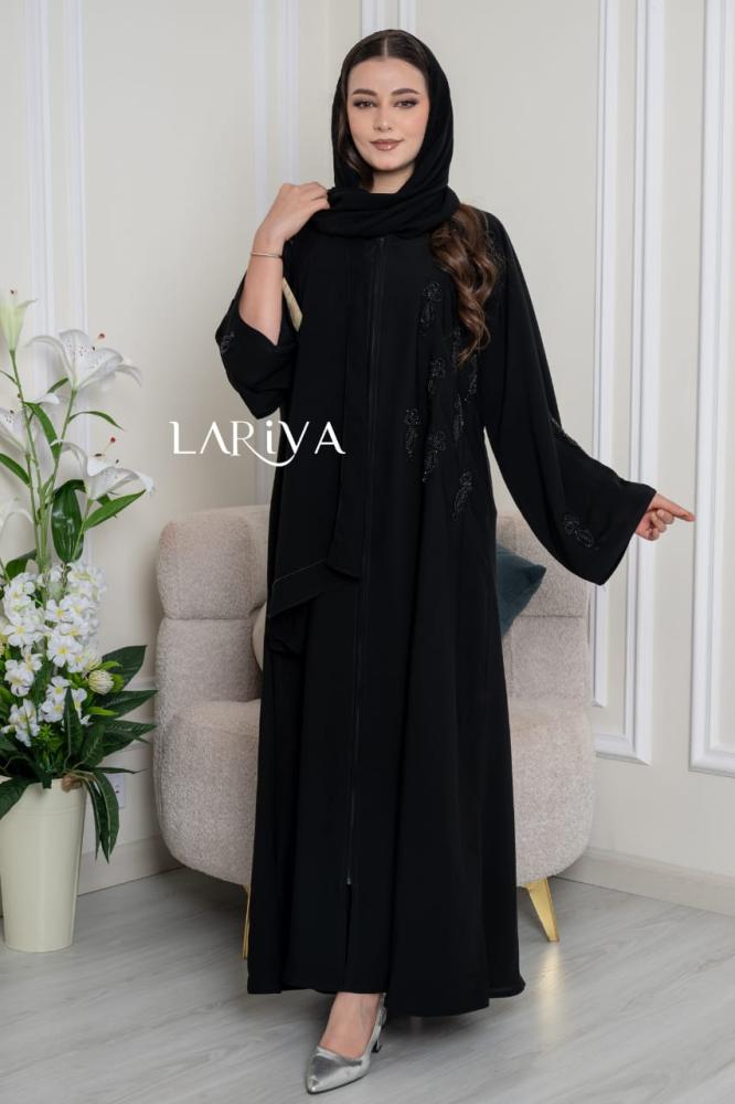 تالقي باطلاله تجمع بين الرقي والاحتشام مع هذه العباية السوداء المطرزة مع هذه العبايه السودة المطرزة بتصميم فاخر واسلوب سعودي راقي